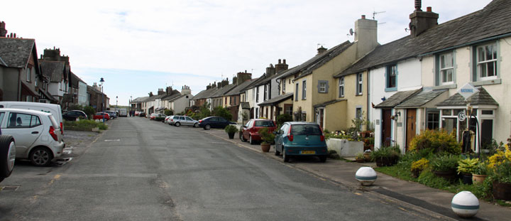 Views of the main road in Ravenglass where cottages jostle one another for space and gardens overflow with flowers.