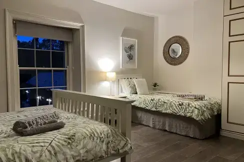 Bryn Min Manton Penthouse in Caernarfon, North Wales, sleeps 8, offering stunning views, spacious open-plan living, two Juliet balconies, and convenient amenities; sorry, no pets.