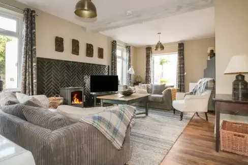 Online Booking Available Viewed 16 times recently. Glebe Holme, WINDERMERE, Cumbria, England sleeps 6 3 bedrooms 2 bathrooms 2 dogs welcome family friendly Luxurious single-storey home near Lake Windermere, Cumbria, in the Lake District, sleeps six, boasts lake views, hot tub, and modern amenities; explore vibrant Bowness, Windermere, and scenic trails; sorry, no pets. ground floor bedroom near local pub Facilities, Features & Awards: 7 nights from £922 Next available: 27 Mar - 7 nights online booking View