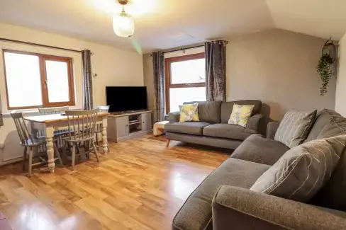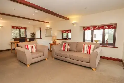 Online Booking Available Viewed 25 times recently. Parlour Barn, Bude, Cornwall, England sleeps 4 2 bedrooms 1 bathroom 1 dog allowed family friendly Stylish and welcoming 2 bedroom dog-friendly barn conversion on a working farm in Bude, enjoying access to the farm’s leisure facilities including a swimming pool, a tennis court and a games room with soft play facilities and pool table. ground floor bedroom near beach Facilities, Features & Awards: 7 nights from £500 Next available: 21 Dec - 7 nights online booking View