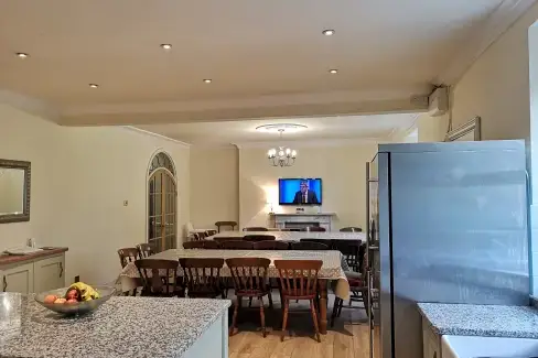 This beautiful Gothic style townhouse with its spacious large rooms and 8 bedrooms is a fantastic holiday house for big groups of up to 20, with a sauna, warm bubbly hot tub and games room with table tennis and snooker there is plenty to keep groups entertained and the house is situated just 10 minutes’ walk from the heart of Abergavenny.