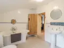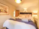 After a long day of making unforgettable memories, head upstairs to relax in one of the two bedrooms. The first has a luxurious king-sized bed, with cosy golden lighting and dreamy covers to lull you into a relaxing night’s sleep. Or, the lovely single room offers the same elegant colours and furnishings, promising a restful night so you’ll wake up ready to explore something new. The family bathroom offers a delightful bath so you can enjoy a soothing soak, as well as a walk-in shower, basin and WC.