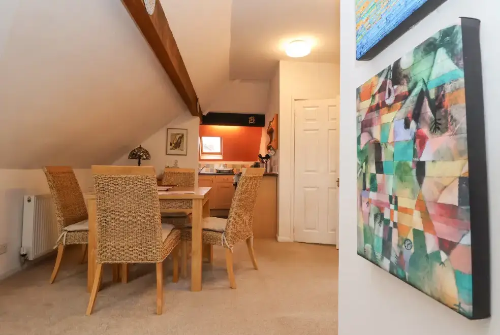 This beautiful Chester apartment is perfect for a romantic city break, offering comfort and convenience all year round. Situated on the first floor, Dragon's Den boasts two bedrooms—a double and a single—and a bathroom with both a bath and a separate shower. The open-plan living area includes a kitchen, dining area, and a sitting area with an electric flame-effect fire. Despite its spacious photographs, this apartment offers far more than meets the eye. Chester has plenty to offer tourists, from excellent shopping in the famous 'Rows' to scenic walks along the Roman Walls and the River Dee. Visitors can explore Chester's medieval cathedral, visit Chester Racecourse, or spend a day at the renowned Chester Zoo.