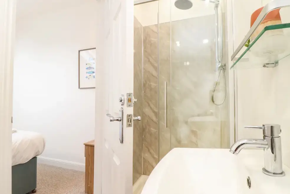 The property boasts two well-appointed bedrooms, perfect for families exploring Cornwall. The bedrooms consist of a super-king (zip/link, can be twin on request) and a twin (zip/link, can be super-king on request), both with en-suite shower rooms. Guests will appreciate the comfort and flexibility of the zip/link options, ensuring a restful night's sleep in modern and sleek surroundings.