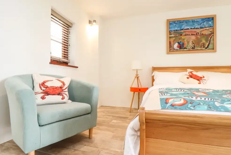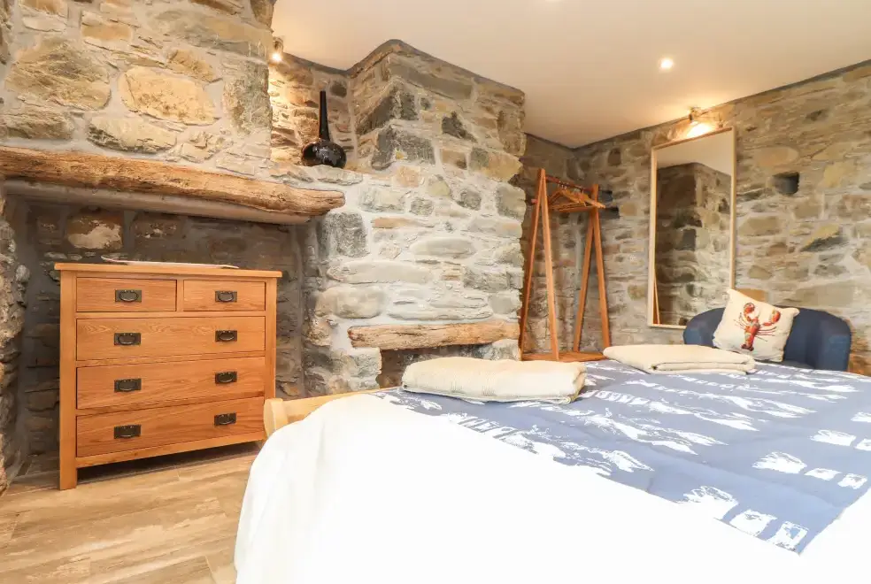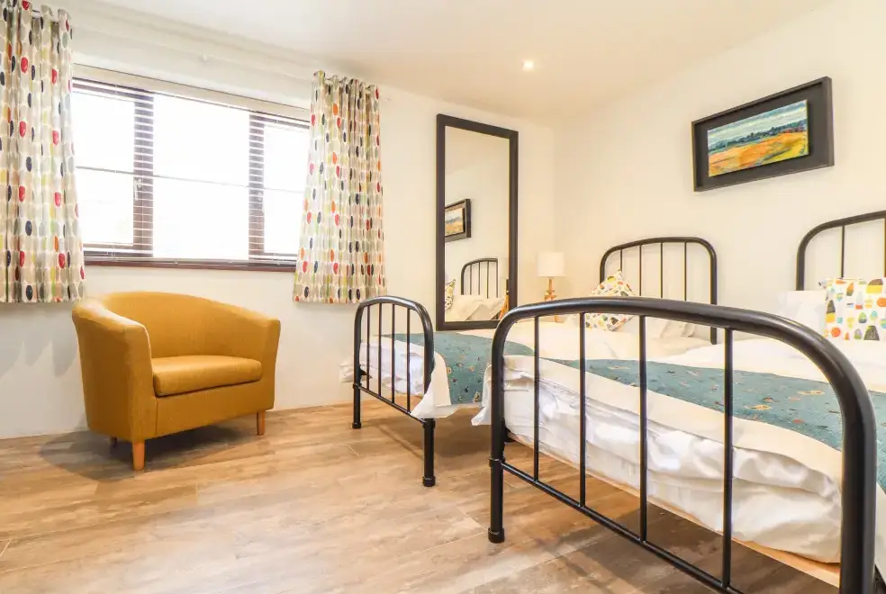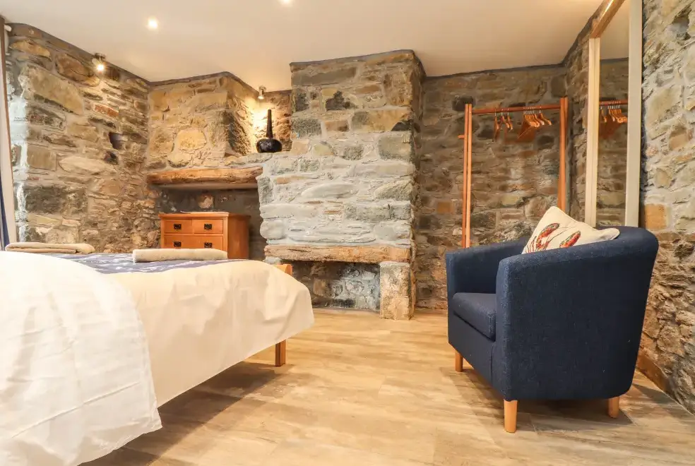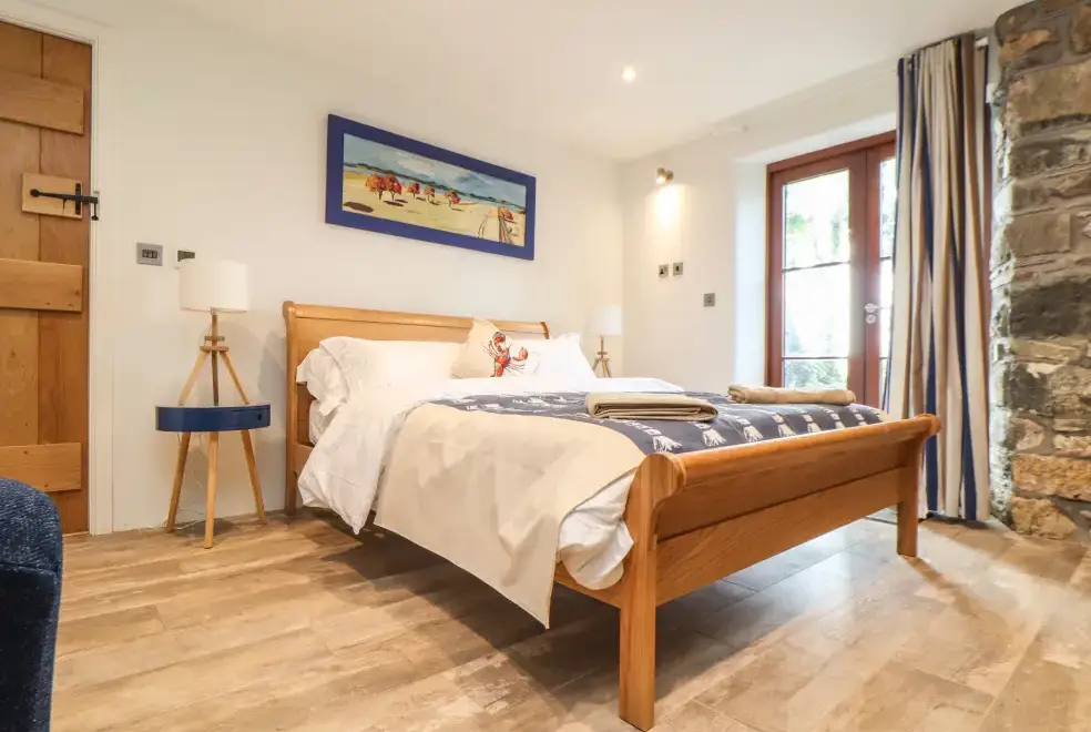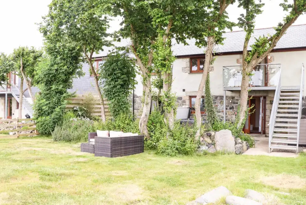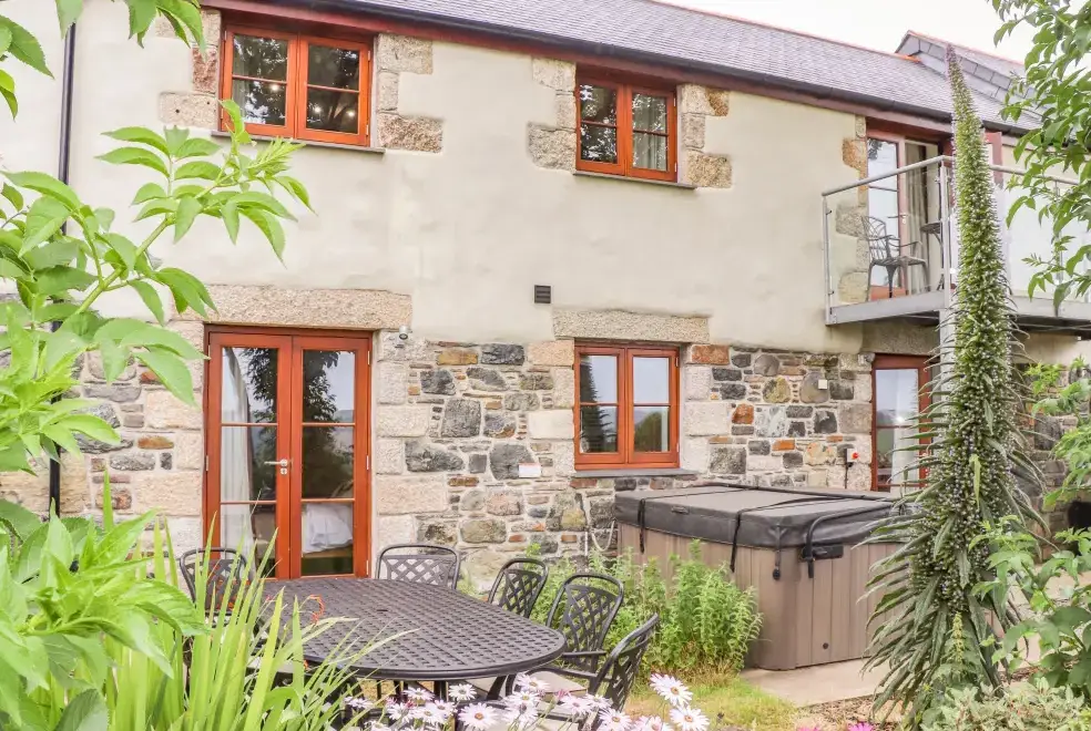 Outside, Polurrian House boasts an enclosed garden with a hot tub, furniture, and a charcoal barbecue. Enjoy the stunning countryside views from the lawned area overlooking the Mullion valley towards the sea at Poldhu Cove. Bike storage and off-road parking are available. Located just over a mile from the spectacular National Trust beach at Poldhu Cove, this property is perfect for a family-friendly holiday in Cornwall.