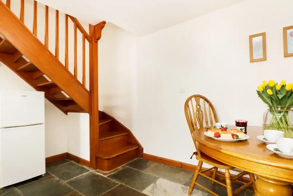 Sleeping 4, this charming barn conversion offers warm and welcoming accommodation and features a lounge with comfy seating, TV and a woodburner style electric fire, a kitchen with dining area, one double bedroom, one bedroom with adult bunk beds and one family shower room with shower and WC.