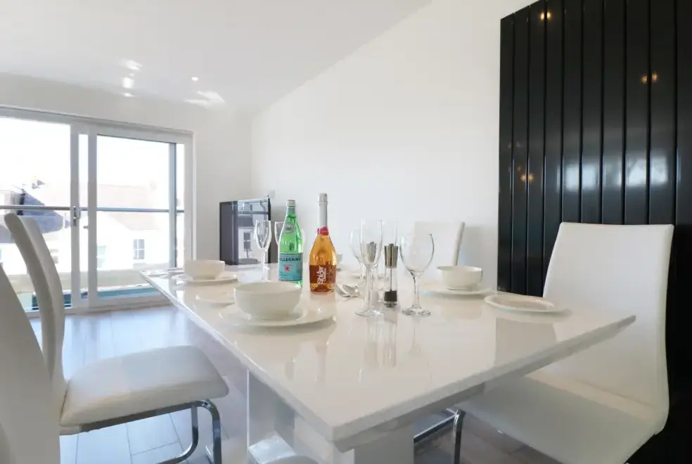 The house features a high-class, open-plan modern kitchen, dining area, and sitting room, designed for comfort and relaxation. The first floor of this 'upside-down' style home boasts a stunning open-plan living area with a well-equipped kitchen and a comfortable dining and sitting area, all designed to maximise the beautiful sea views.