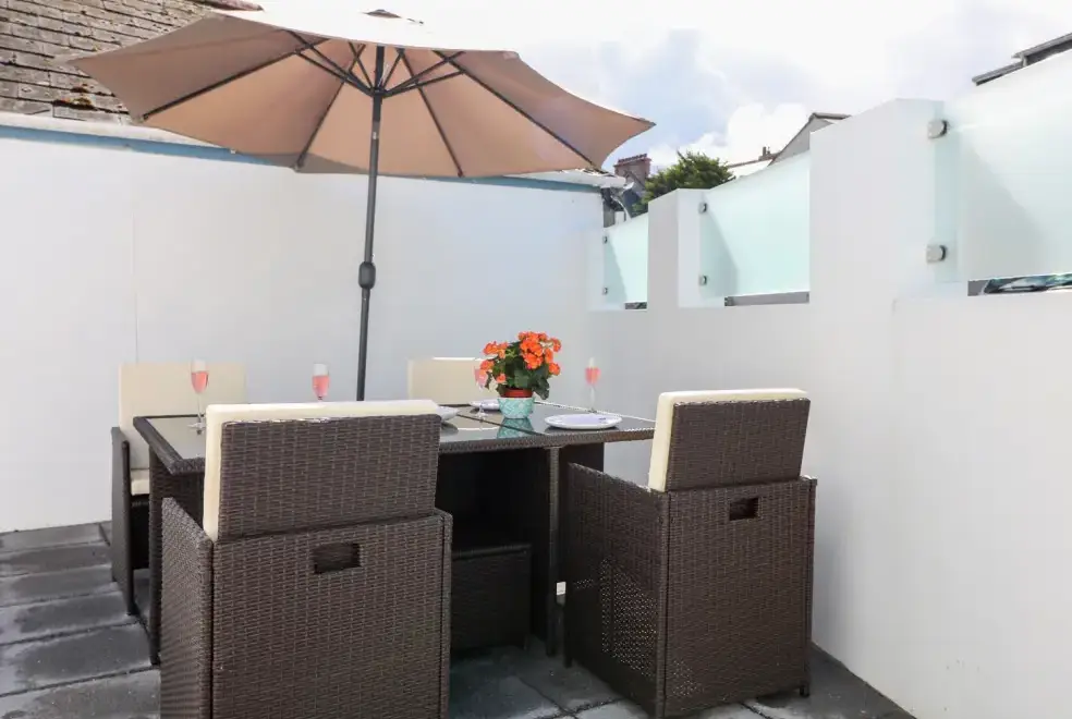 Outside, An Drowes offers off-road parking for two cars and an enclosed patio area with furniture, perfect for sunbathing or planning your day over breakfast. The patio is an ideal spot to unwind after a day exploring the dramatic north coast or the nearby beaches of Newquay.