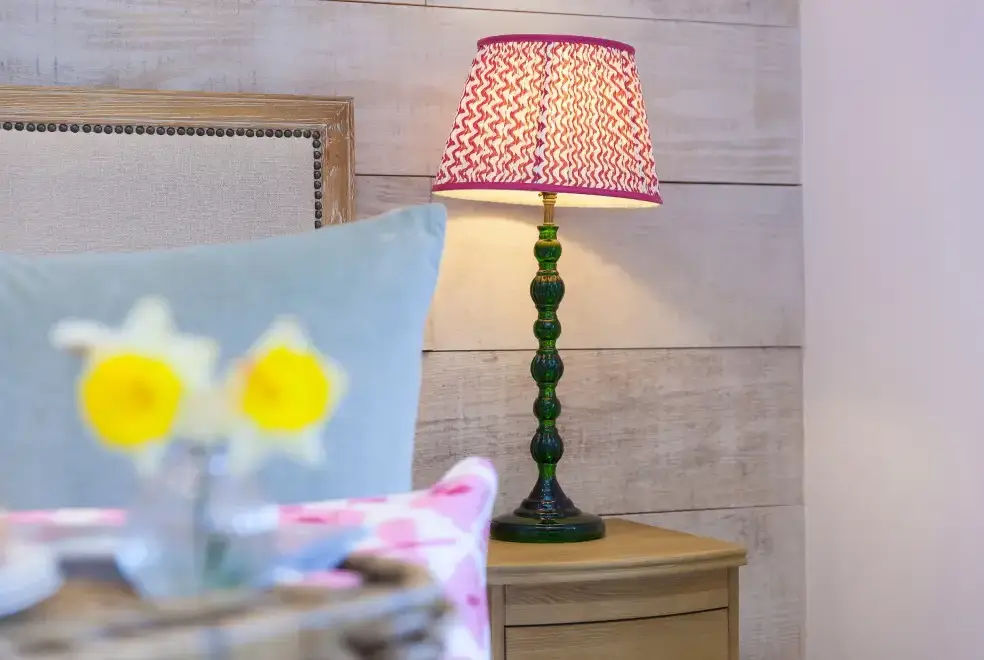 Retreat to the king-size bedroom of The Wink, adorned with bespoke furnishings and a smart TV. The en-suite bathroom is an epitome of luxury with its quirky bath, double shower, heated towel rail, and WC. Experience the perfect blend of comfort and style, ensuring a restful night's sleep and a refreshing start to your day in this superbly appointed bungalow.