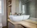 The separate bathroom has a bath with a shower over it, a hand basin and WC. This holiday home is blessed with Wi-Fi and Bluetooth ceiling speakers which will please anyone who brings their music with them.