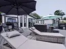 A decked terrace in front of the lodge is a good place to relax on the sun beds or the rattan garden furniture. It is the perfect spot to enjoy a few snacks and drinks when not out and about.