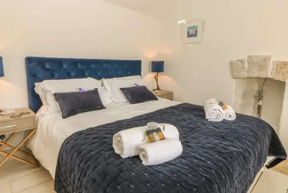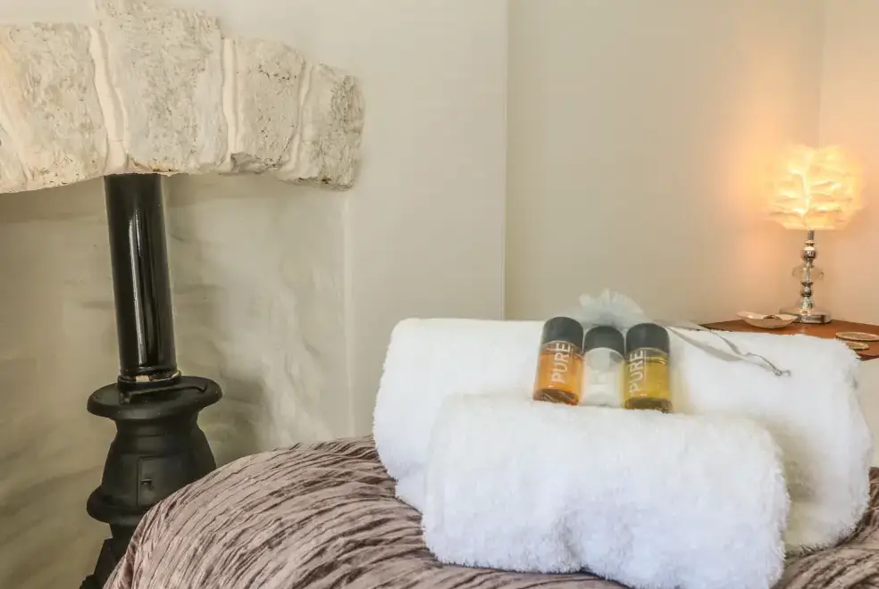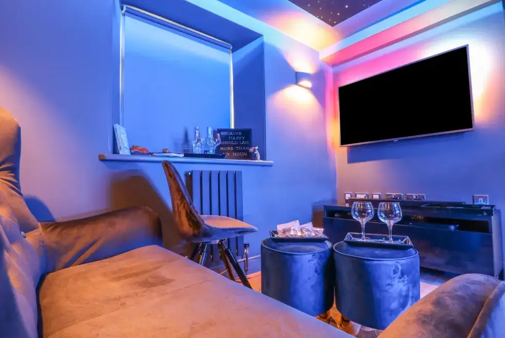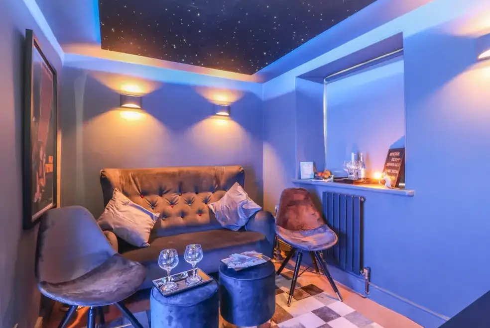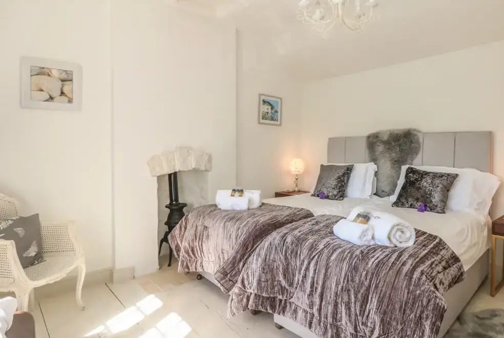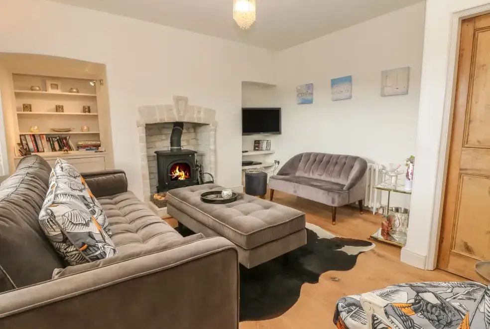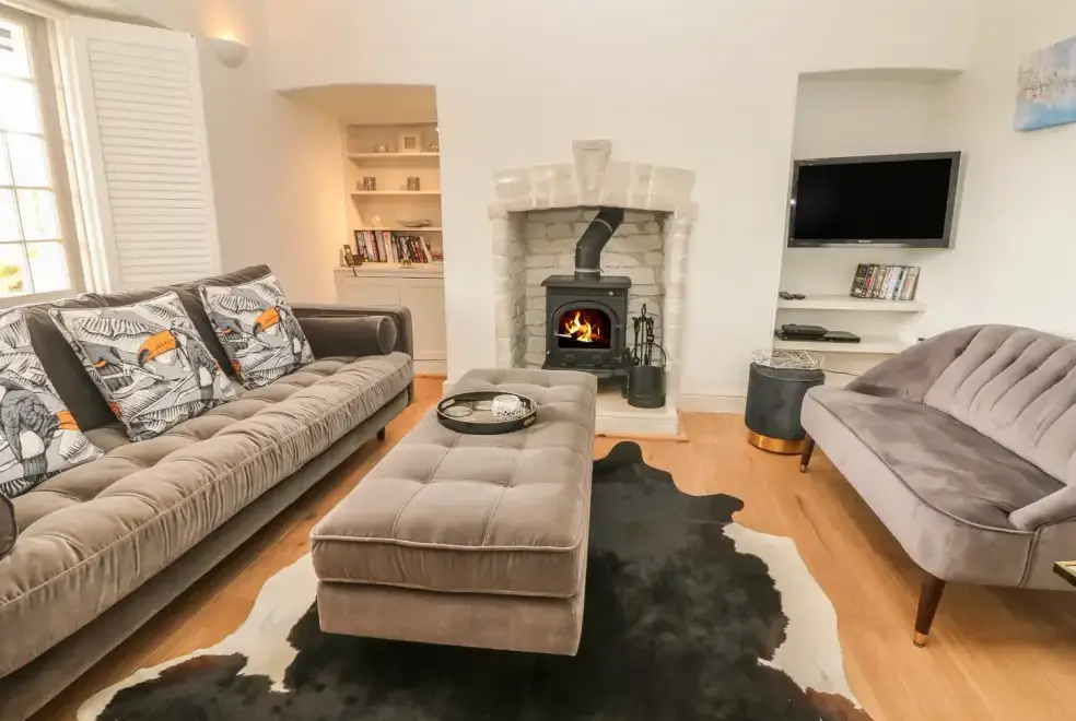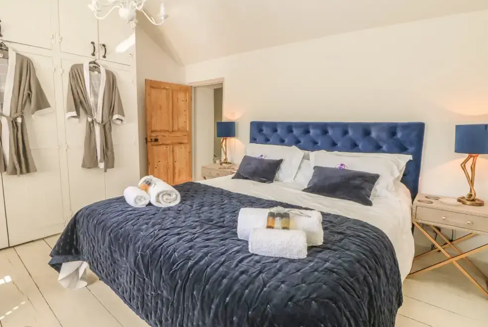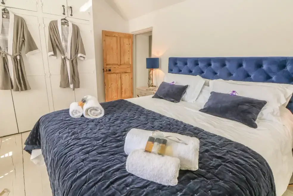 The cottage is designed over two floors, offering two luxurious bedrooms: one with a super king-size double bed and another with a zip and link super king, which can be configured as singles upon request. The first-floor bathroom features a freestanding bath, separate shower, basin, and WC, while a shower room with a walk-in rain shower is also available. On the ground floor, guests will find a cloakroom with a basin and WC, a well-equipped kitchen, utility room, dining room, and a sitting room with a wood-burning stove. The movie room is perfect for entertainment, complete with Netflix, a PlayStation, and popcorn.