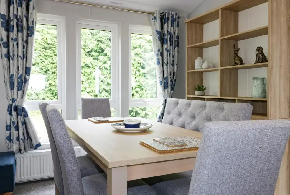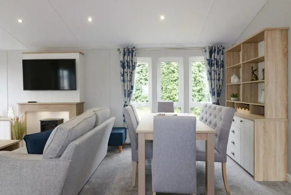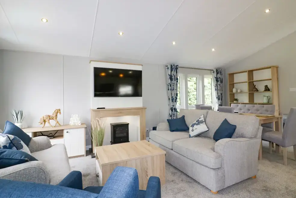 Pinehurst Lodge provides a luxurious all-ground-floor accommodation experience. The three bedrooms include one double with an en-suite shower, basin, and WC, another double, and a twin room. A family bathroom with a bath, shower over, basin, and WC serves the other guests. The open-plan living space is a hub of comfort and style, where guests can unwind on the sofas, enjoy meals in the elegant dining area, and cook in the fully equipped kitchen. With quality fittings and appliances, preparing family favourites is a breeze.