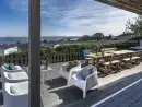 Chy Lowen is undeniably one of St Ives' most luxurious holiday homes, offering breathtaking views of Porthmeor Beach, the Atlantic Ocean, and the stunning North Cornwall coast. Accessed via a private driveway in a residential area, this magnificent home offers the 'wow' factor from the moment you enter. The spacious living room, with floor-to-ceiling glass windows, floods with natural light and offers stunning views, regardless of the weather. The superb kitchen area, a long dining table for family meals, and large, cosy sofas provide the ultimate comfort. Enjoy films on the drop-down electric screen with full HD projector and surround sound for a cinematic experience. On cooler evenings, the woodburner provides warmth and ambiance as you relax with views over the bay.