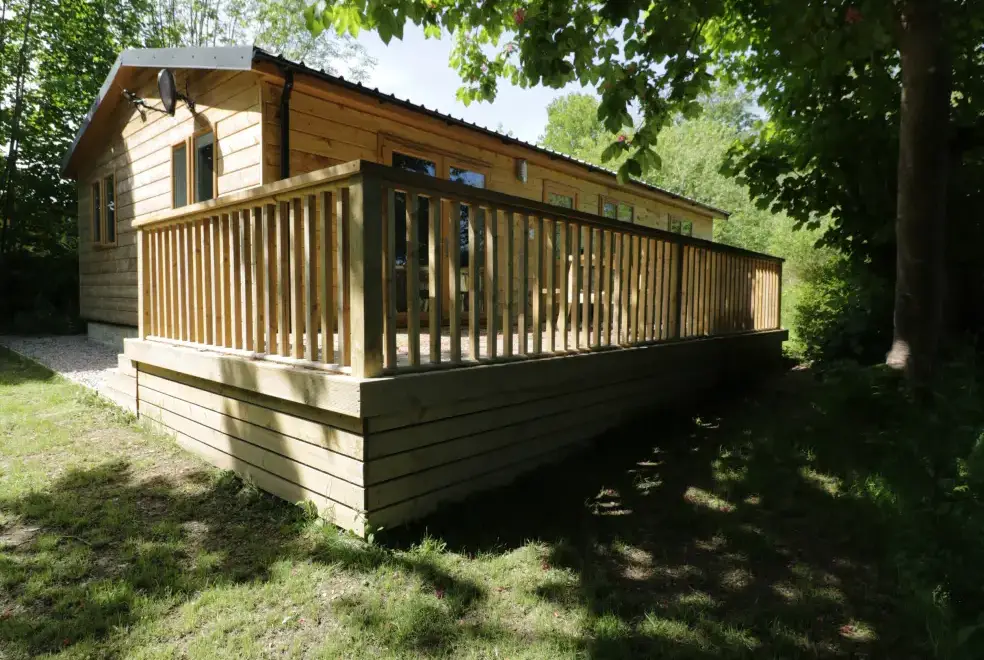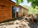 Outside the lodge there is a decked area with a picnic bench where guests can dine alfresco and enjoy the setting.