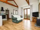 • Open plan living area with wonderful wooden beams, living area, kitchen and dining area.