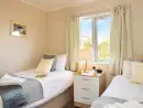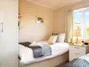 The bedrooms are attractive; the double has a sliding mirrored wardrobe, and the second bedroom features twin beds.