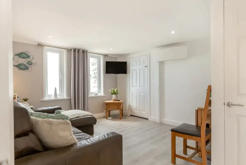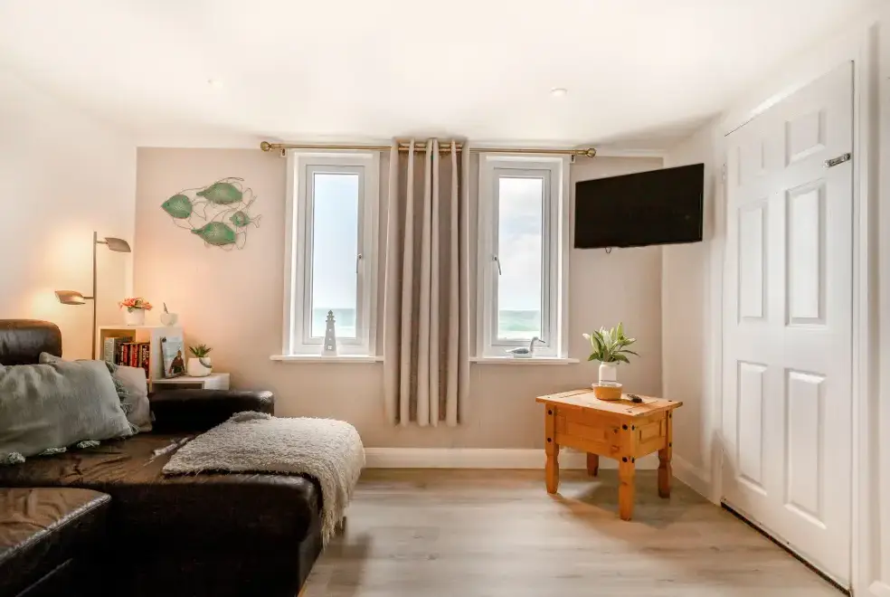 The dog-friendly beaches of Whitsand Bay promise a remarkable coastal experience, stretching about five miles, and are perfect for swimming, surfing, and fishing enthusiasts. Beachcomber's Cottage, neighbouring Ref. 4466, provides a peaceful seafront setting for up to six guests if both properties are rented together. Enjoy the comforts of this ground floor apartment amidst the stunning Cornish coastline, an ideal getaway for couples exploring the area's charming attractions.
