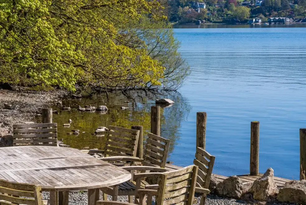 Nestled on a secluded bay on the western shores of Lake Windermere within the 5,000-acre Graythwaite Estate, this Lake Windermere cottage boasts its own private jetty and boat mooring. It's perfect for extended family or friends seeking a magical Lakeland break. The accommodation is spacious and finished to an exceptional standard, offering equal bedrooms and bathrooms for a comfortable stay. The sitting room provides incredible lake views, with patio doors that open to a fabulous lakeside setting and a wood-fired hot tub, offering a perfect retreat in both winter and summer.