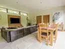 • An open plan living area with comfy sofas, TV, warming woodburner, dining area with lovely views and large sleek well-equipped kitchen,
