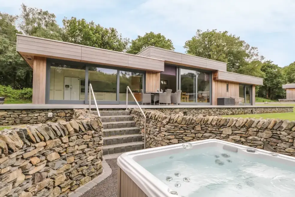 Stylish 3 bedroom holiday lodge with bubbly outdoor hot tub in Cumbria’s Lake District National Park