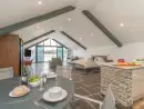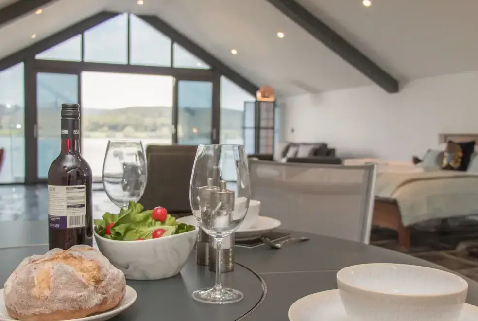 The dining area is another beautiful addition to this space, perfect for a romantic meal against the Lake District’s spectacular backdrop. The well-equipped kitchen offers everything you need to achieve this, from the coffee machine and food processor to all of the essentials. At nights, snuggle up on the decadent king-sized bed, the perfect space to spend quiet mornings relaxing in your serene holiday home.