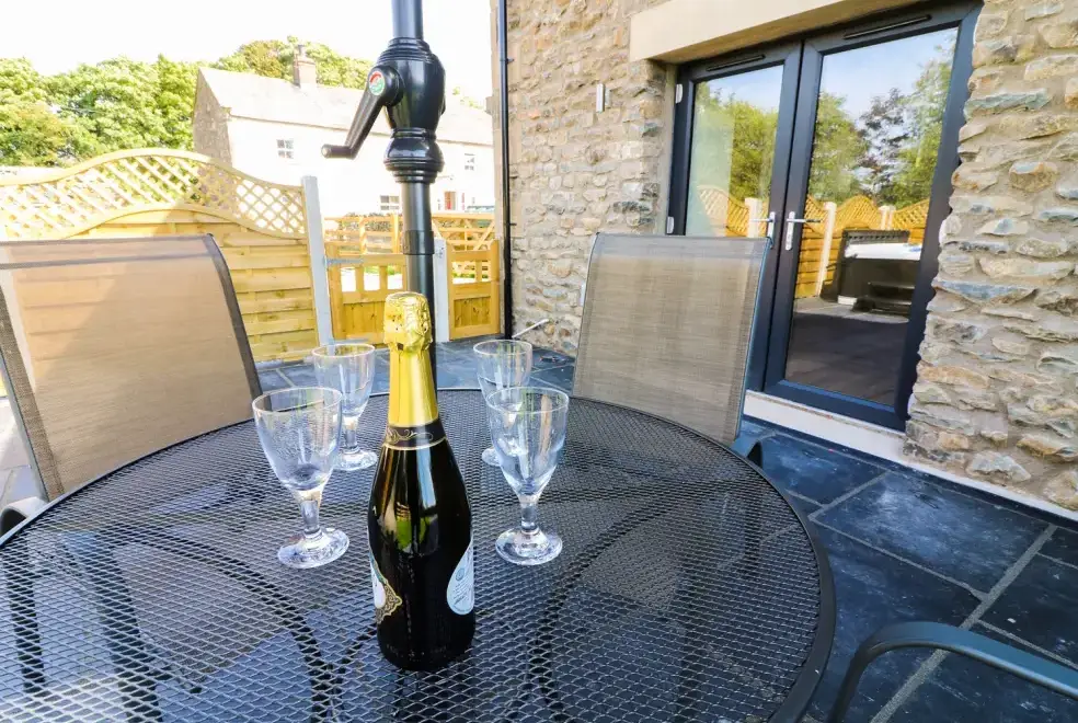 Damson Barn is another stunning barn conversion in a countryside setting near Kirkby Lonsdale, part of a working farm. It features a sunny patio and a private hot tub, with an airy sitting room and a well-equipped kitchen. Upstairs, the bedrooms include a super king-size with en-suite and a zip/link super king-size that can convert into twin beds. Guests can enjoy the open grassy garden and the day-to-day farming life, with plenty of local attractions to explore.