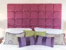 - King-size bedroom with feature wall of geometric bronze and grey,