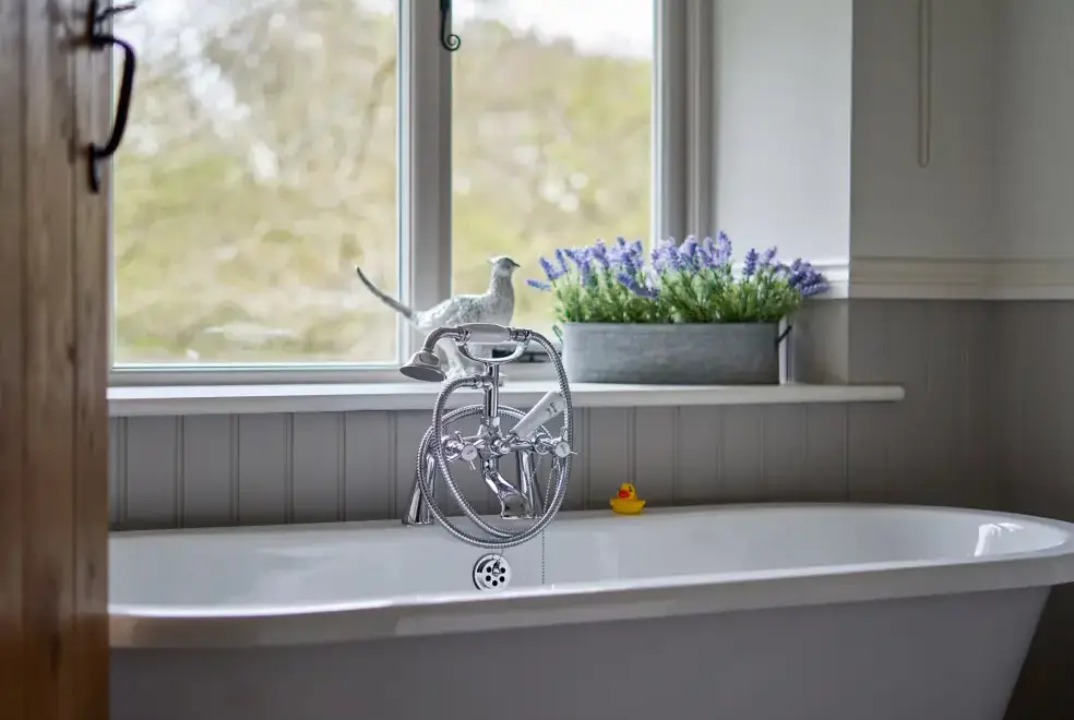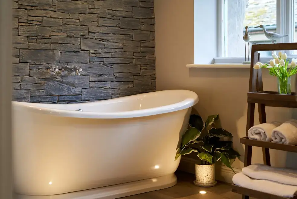 The sleeping arrangements at The Old Water Mill are designed for luxury and flexibility. On the ground floor, a king-size bedroom features an en-suite shower room. Upstairs, two zip/link super-king-size bedrooms offer en-suite facilities, one with a bath, and the other with a shower. Additionally, a king-size bedroom comes with Jack-and-Jill access to a bathroom boasting both a bath and a shower. These well-appointed bedrooms ensure a restful retreat after a day exploring the Lake District.