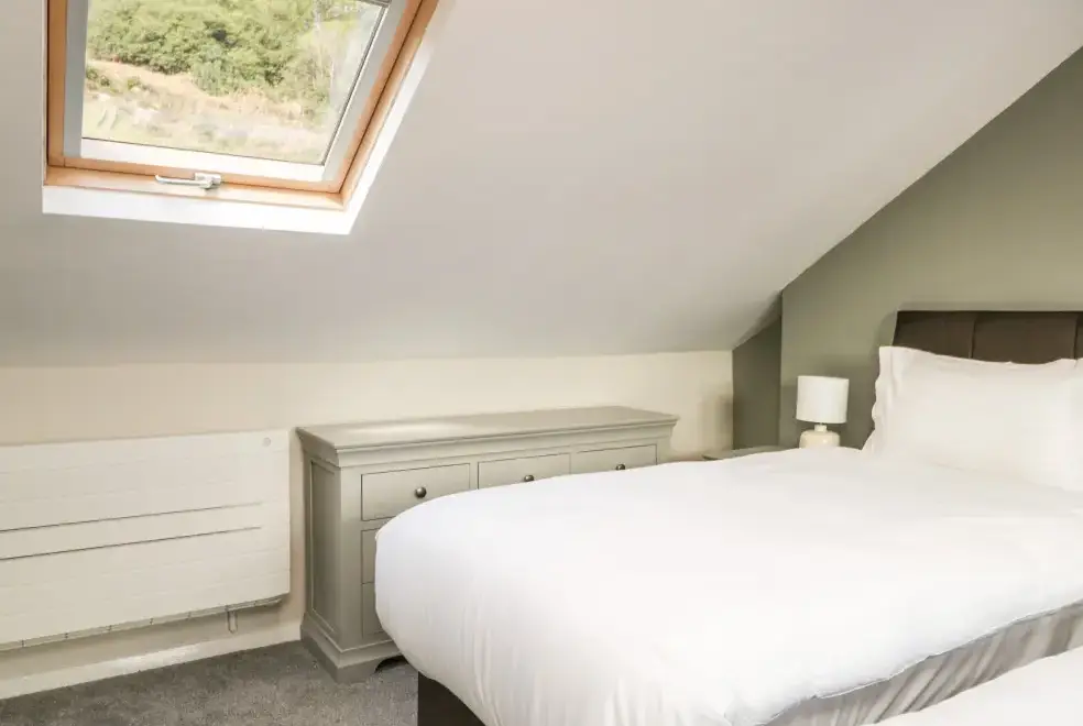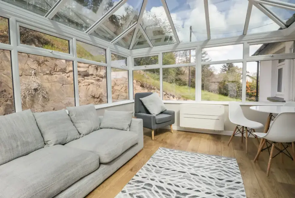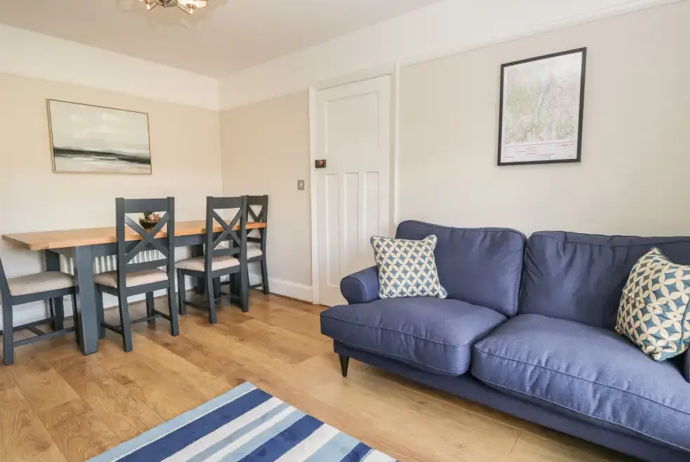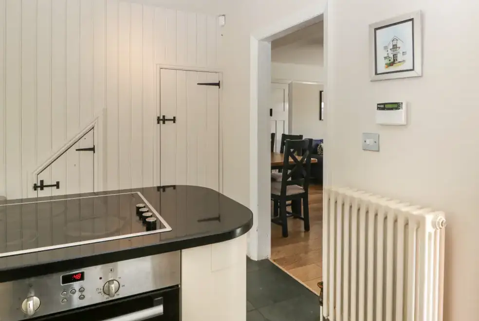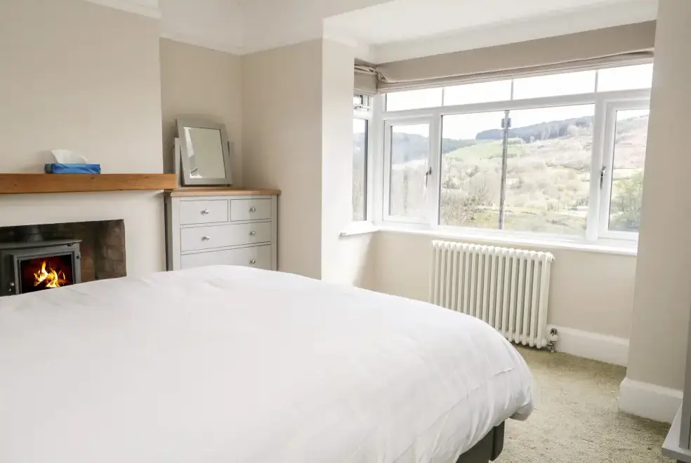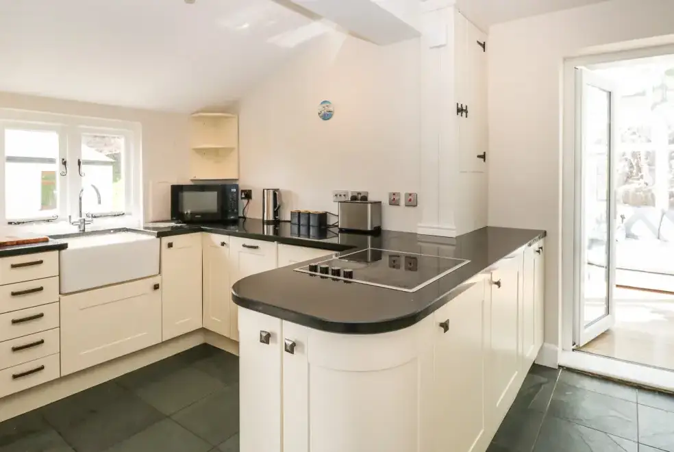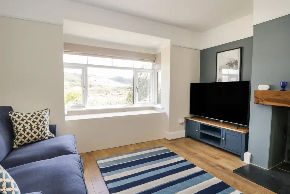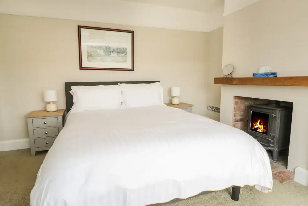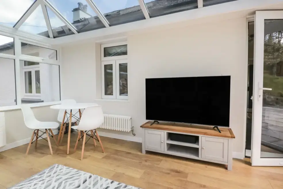 Green Acre Cottage accommodates up to seven guests, featuring four bedrooms: a super-king-size (zip/link), a ground-floor king-size, a ground-floor double, and a ground-floor single. The property includes a bathroom with a bath and shower, a ground-floor shower room, and a fully equipped kitchen with modern appliances. An external utility area with a washer/dryer is also available. The living/dining room boasts a woodburner and a 43-inch Smart TV, while the conservatory offers a large sofa and a 60-inch Smart TV, providing ample space to relax and enjoy the stunning countryside views.