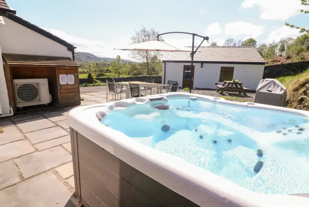 Set within two acres of land, Green Acre Cottage offers a tranquil escape with an enclosed garden, a hot tub with field views, and a patio area with seasonal furniture for alfresco dining. The property provides off-road parking for five cars and a shed for sports equipment storage, catering to guests interested in water sports, hiking, and cycling. Children are welcome, but families need to bring a cot or highchair for infants. Well-behaved pets are also welcome, making it a perfect choice for a family and pet-friendly holiday.