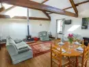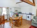The upstairs open-plan living area includes a kitchen, a dining area and a sitting area with a wood burner. Guests benefit from shared use of mature gardens. There is off road parking for up to 2 cars.