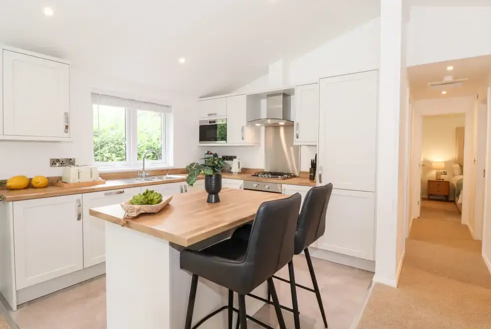 Unique Luxury Lodge is a beautifully presented, single-storey lodge located on the picturesque White Cross Bay Holiday Park, nestled on the shores of Lake Windermere. This modern retreat offers an open-plan living space equipped with a well-appointed kitchen, dining area, and sitting space, featuring an electric oven, gas hob, microwave, fridge/freezer, washing machine, and dishwasher. Enjoy entertainment with three Smart TVs and cosy up by the electric fire. The lodge comprises two bedrooms: a double with an en-suite shower room, and a twin, complemented by a family bathroom. Outside, unwind on the enclosed wraparound decking, complete with a bistro table, seating furniture, and off-road parking for one car.