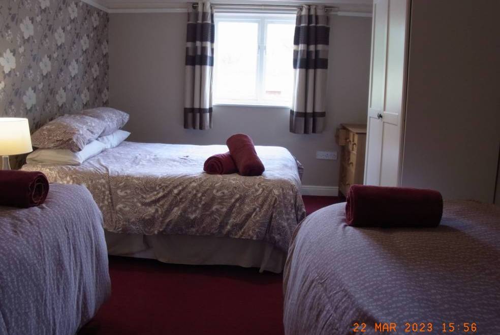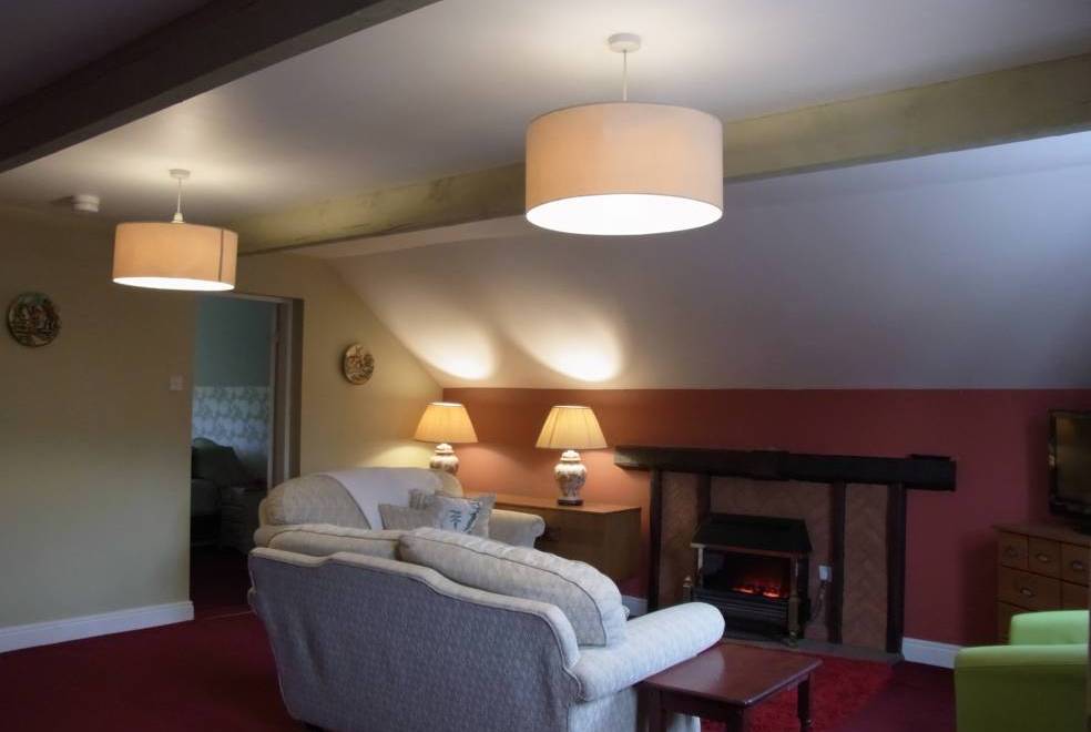 The large lawn is private and is suitable for marquees to enhance your celebration. Activities can be held on the lawn or on the field next door by prior arrangement. You will find a slate bed Pool Table in a separate Games Room. Ample floodlit off-street parking. Each apartment has two bedrooms (superking or double with twin/triple, or quad), a bathroom with showers (one from the main hotwater supply and the other is electric), fully equipped kitchen, and spacious lounge with TV. You will also find Freeview, DVD, CD system