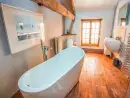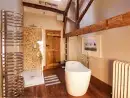 This outstanding Cromford Mill cottage blends original features with contemporary design, featuring beautiful wooden floors, beams, and exposed stonework. The historic property is accessed through a gated entrance leading to a slate and shrub garden with a seating area overlooking a cascading waterfall. Inside, a high-spec kitchen with a gas range oven, an American fridge/freezer, and dining for 12 can be found. The former kiln room is now a cosy sitting room with exposed brickwork. Bedrooms on this floor include TV and en-suite shower rooms with massage jets. A bespoke wrought iron staircase leads to the first floor, showcasing impressive beams, a stunning master bedroom, and a lavish bathroom with a luxury slipper bath and walk-in shower.