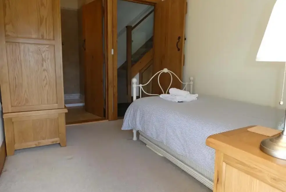 • A single bedroom (with full-size trundle bed hidden beneath. This room is ideal for children sharing) with ensuite shower room with luxurious rainfall shower, basin and WC.
