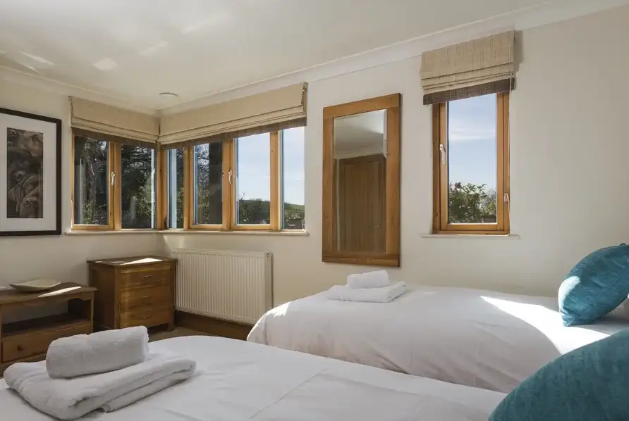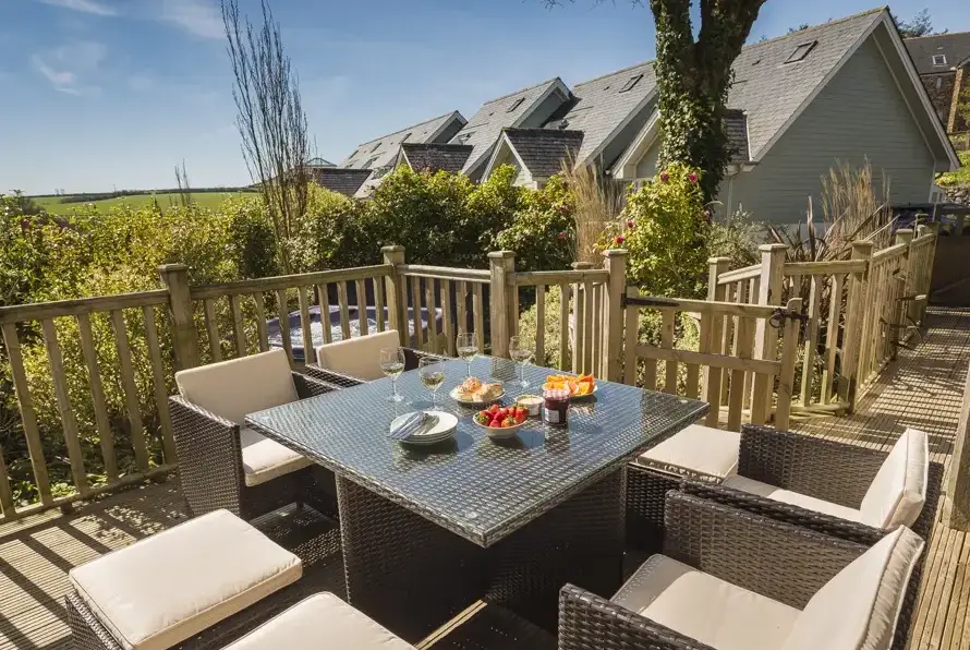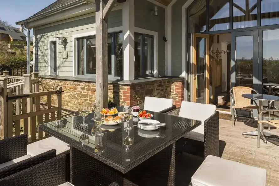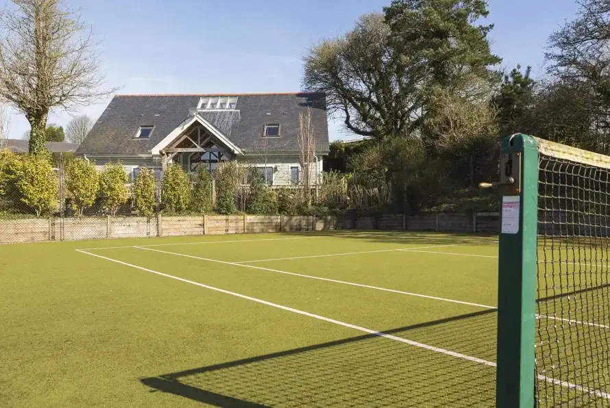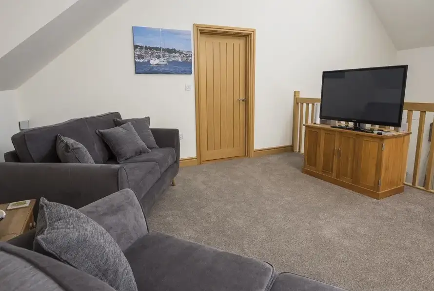 Court Lodge offers an array of amenities for your comfort and enjoyment. Relax in the large private outdoor hot tub or unwind in the open plan dining/living room. The property boasts a stunning handmade kitchen and a utility room, along with a fabulous first-floor ‘gallery’ seating area. Guests have access to Hillfield Village’s children’s play area, all-weather tennis court, and beautiful gardens. Note that last-minute bookings (within 5 days of arrival) may not guarantee hot tub availability; please confirm with the Dartmouth Team.