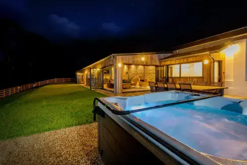 Online Booking Available Viewed 17 times recently. Kingston 8 miles away Court Lodge, Hillfield Village, Dartmouth, Devon, England sleeps 10 5 bedrooms 5 bathrooms No pets family friendly Luxurious 10-sleeper in South Devon's Hillfield Village, boasting stunning countryside views, a private hot tub, and access to tennis courts; explore historic Dartmouth nearby. ground floor bedroom Facilities, Features & Awards: 7 nights from £1202 Next available: 20 Dec - 7 nights online booking View