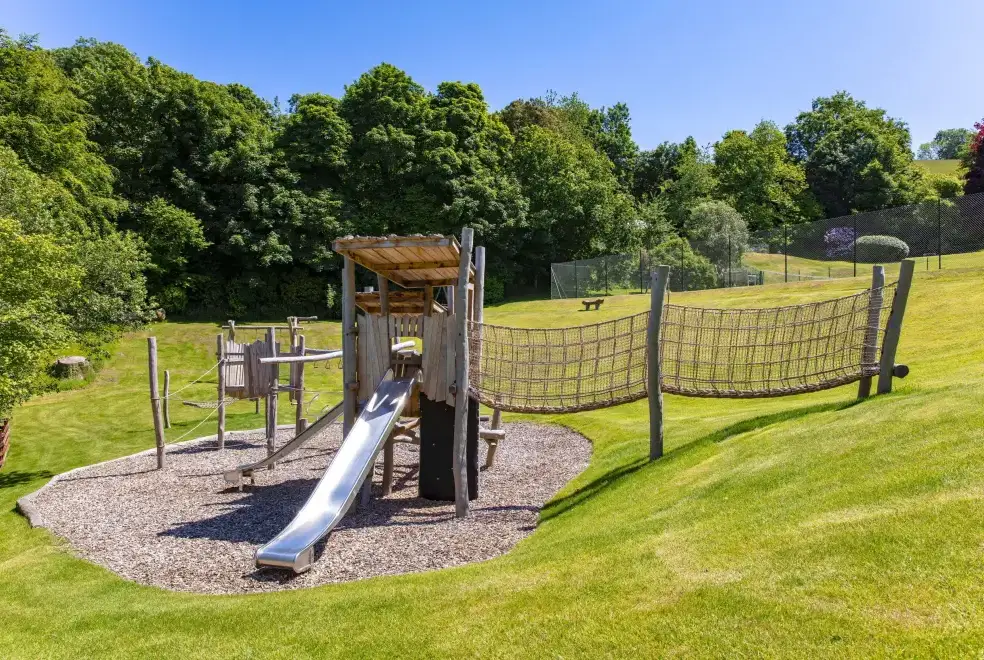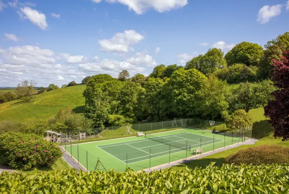 Guests staying at Gitcombe House benefit from access to the estate's exceptional amenities, including both indoor and outdoor heated swimming pools, a hot tub, a sauna, children's play areas, and tennis courts. The outdoor pool is open from 8 am to 8 pm and features a depth ranging from 1 metre at the shallow end to approximately 2 metres at the deep end. This magnificent Georgian manor promises an unforgettable family holiday in Devon, with its stunning period furnishings and immaculate decor.