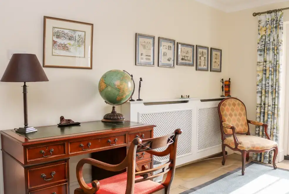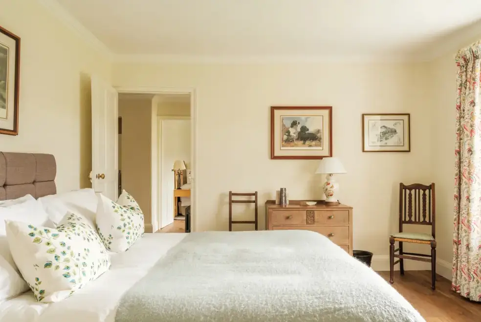 Inside Sandridge Barton, the spacious and light-filled interiors offer a harmonious blend of elegance and comfort. The house spreads across three floors and includes a fully equipped kitchen, a cosy snug with a wood-burning stove, a large dining table for twelve, and a utility area with modern amenities. The south-facing terrace offers breathtaking views over the enclosed sloping garden, complete with outdoor dining furniture, a barbecue, and loungers. This tranquil setting is ideal for enjoying long lunches and evenings with a glass of wine.