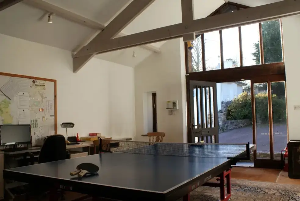 Sandridge Barton offers a variety of exclusive amenities for relaxation and entertainment. The heated indoor pool, measuring 30ft by 15ft, provides a serene space to unwind and is accompanied by a changing area and WC. For indoor fun, the separate games barn includes a full-size snooker table, table tennis, table football, games, and a TV/DVD setup. The lower ground floor houses a wine-tasting and dining space, along with a bar, extra seating, and a kitchenette, leading to the sixth en-suite bedroom with garden access.