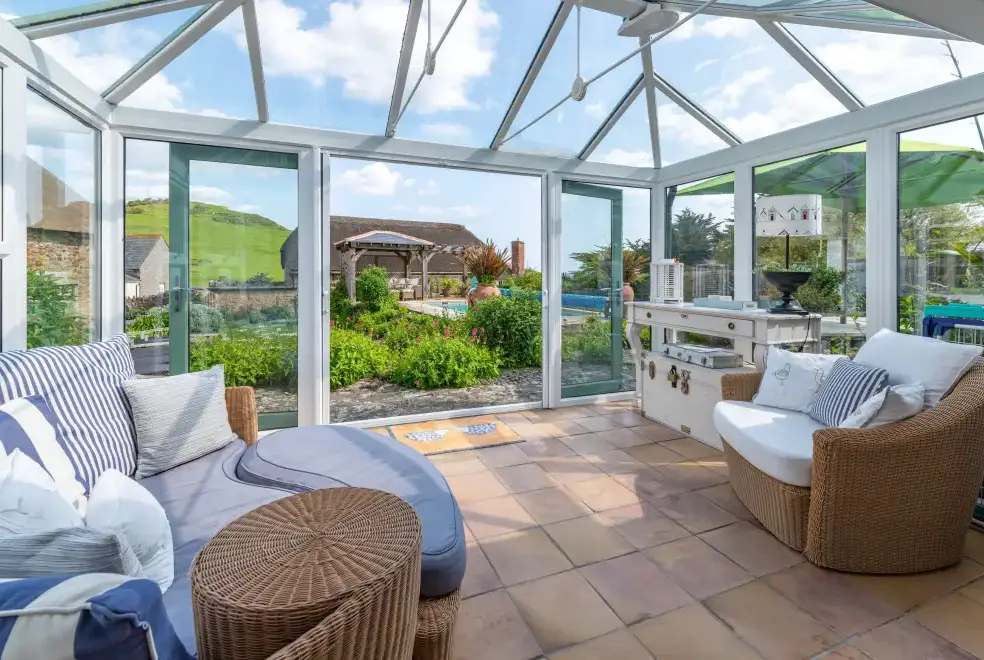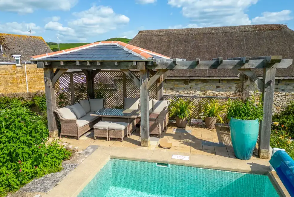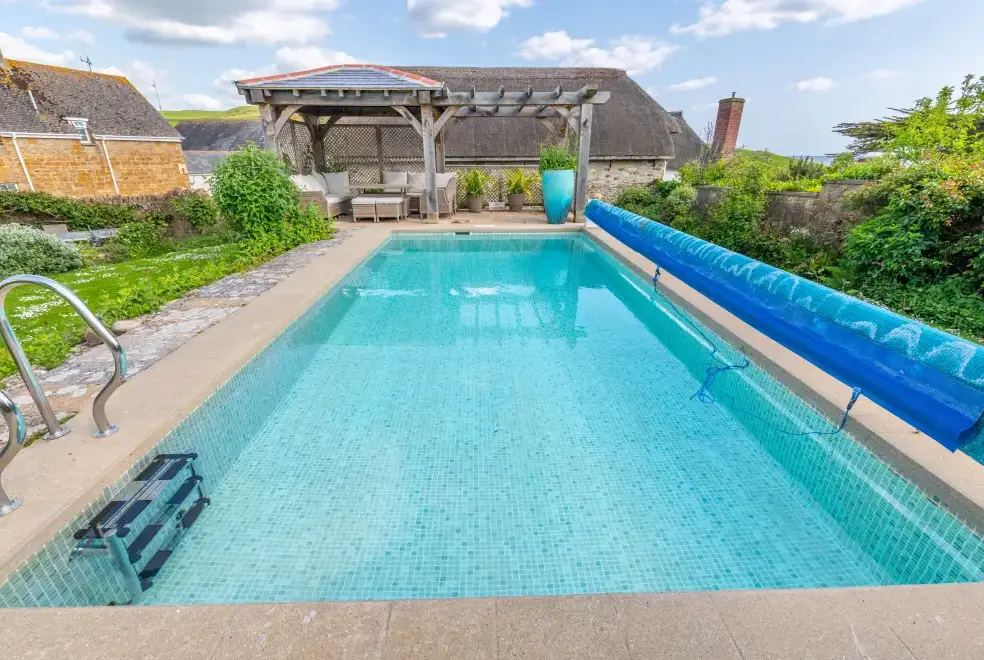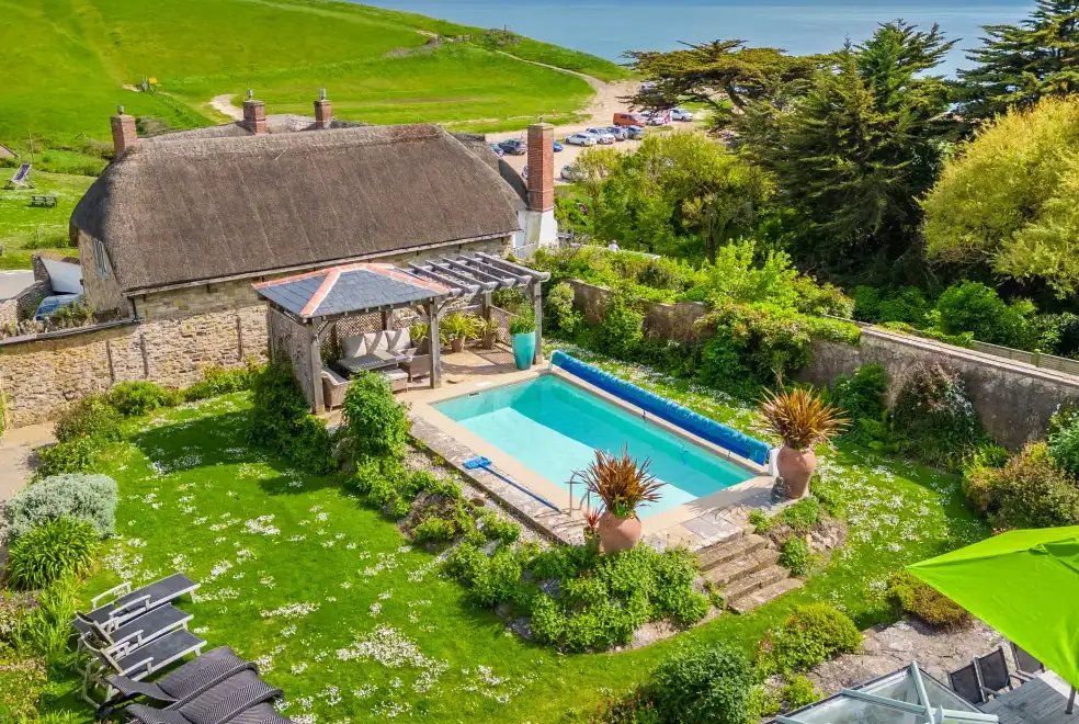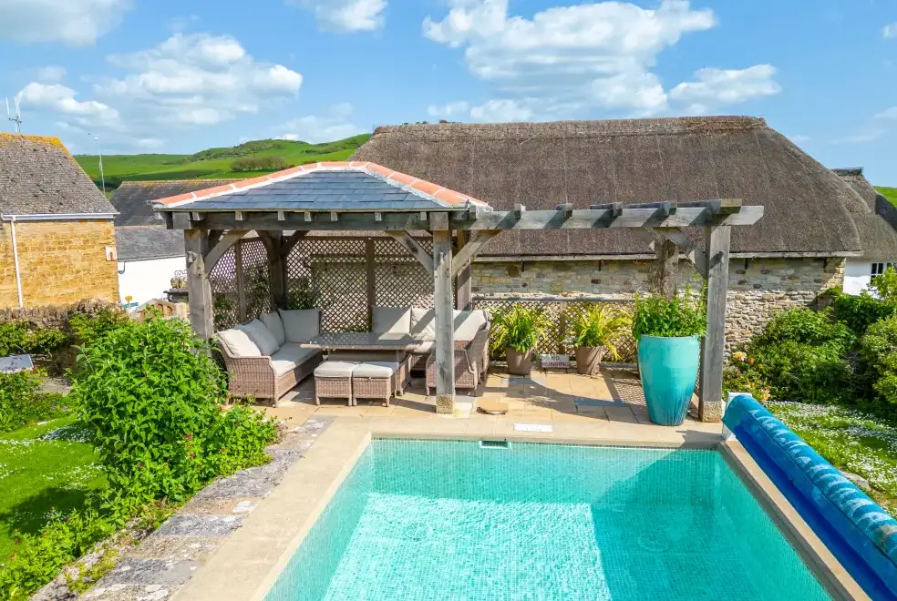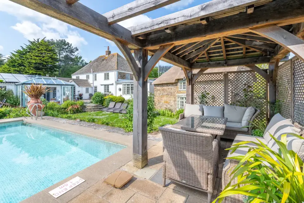 With an outside heated swimming pool, lovely gardens, plus a trampoline and table-tennis for family fun, as well as a great location just 100 metres walk from the beach at Seatown, whether for a break with family or friends along Dorset's Jurassic coast, this 5 bedroom holiday cottage has plenty to offer.