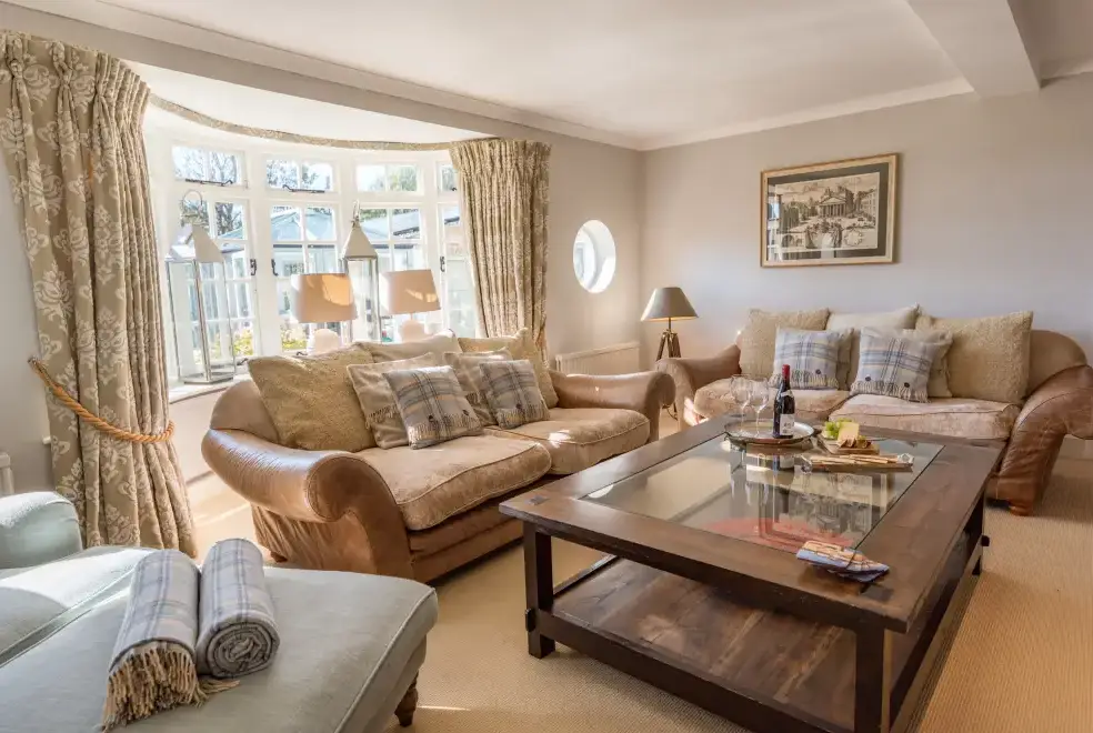 Outside, this property is a real treat with 3 acres of gardens and woodlands (including a lovely walled garden). So there is plenty of space to enjoy relaxing outdoors in summer time and walks whatever the time of year. Plenty of outdoor furniture is provided including outdoor sofas, chairs, dining tables and loungers so you can really make the most of the fabulous outdoor space.
