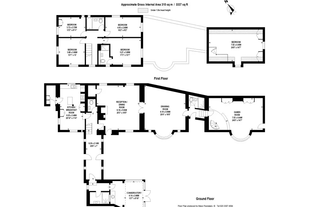 There are plenty of areas for groups to relax and get together; the roomy light and airy lounge is a great place to chill out and features a dining area where you can all sit down and eat together, there is also a luxurious spacious fitted kitchen (plus separate utility room), as well as a sunny conservatory and a games room complete with Wii and table football. There are five beautifully presented bedrooms; one romantic bedroom with a king-size bed with an en-suite bathroom, another bedroom with a king-size bed (can be arranged as a twin on request), a double bedroom, a twin bedroom and a family bedroom with 3 double beds. There is also a family bathroom with bath and shower over, plus two family shower rooms.