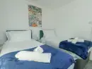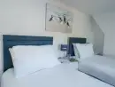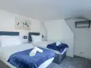One of the two bathrooms is situated on the ground floor and contains a full length bath. Upstairs there are four bedrooms with a double bedroom and a twin bedroom on both the first and second floors. All bedrooms are spacious and contain divan beds. There is some storage in each room in the form of a chest of drawers or a wardrobe. The bathroom is located on the 1st floor and this two has a bath with a shower overhead, a wash basin and WC.