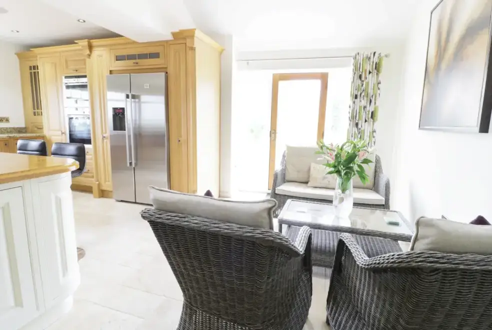 Discover Bell House Barn, a modern, detached cottage located near Staindrop village, close to Darlington in County Durham. This luxurious barn conversion boasts four beautifully furnished bedrooms, accommodating up to eight guests. Enjoy the convenience of two king-size doubles, one double, and one twin room, complemented by two family bathrooms. The ground floor features a spacious sitting room, a dining area, and a well-equipped kitchen, perfect for culinary enthusiasts.