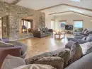 • Large stylish lounge with ample comfy sofas, great views, charming original stone walls, warming woodburner and large TV with Freeview,