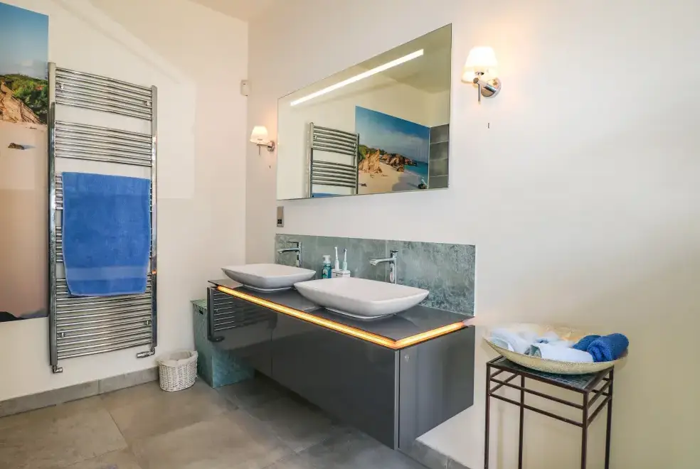 The Hideaway comfortably accommodates ten guests with its five stylish bedrooms. The master suite boasts a super-king-size bed, TV, balcony, and an en-suite with a walk-in shower and double basin. Two king-size bedrooms, one featuring an en-suite bathroom, and a double room with an en-suite cloakroom ensure privacy and comfort. A family room with a bunk and single bed completes the sleeping arrangements. Each room is thoughtfully designed to provide a restful retreat after a day of exploring Hove and its surroundings.