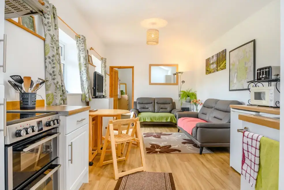 Outside, The Stable @ Rose Cottage provides convenient off-road parking for one car and a charming front lawned garden complete with furniture and a BBQ, ideal for alfresco dining. The garden area, accessible through two sets of doors from the living space, offers a serene spot to unwind, enjoy a summer barbecue, or simply savour the tranquil sounds of the countryside. Adjacent to the cottage, a handy drying room with a washing machine adds to the convenience.