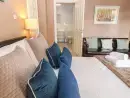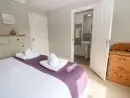 • Bedroom 2 with a king-size bed, TV and en-suite bathroom.